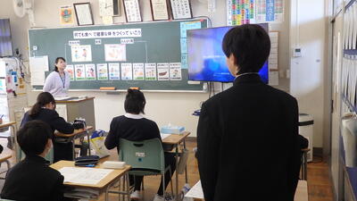 11月10日(月)、行田市学校給食センターひまわりの栄養士の先生による、食育授業が行われました。