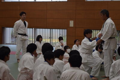 12月2日(火)2・3時間目に、シドニーオリンピック81キロ級金メダリスト「瀧本 誠 様」をお招きし、メダリストによる保健体育柔道授業支援事業が開催されました。生徒たちは、世界一の技とスピードを目の当たりに体験し、目を輝かせていました。最後には、「メダリストに投げられてみたい」と申し出る生徒も多く、その技のキレ味に一同驚嘆しました。瀧本先生からは「これからも柔道を楽しんでください。」という温かい言葉をいただきました。ご指導ありがとうございました。