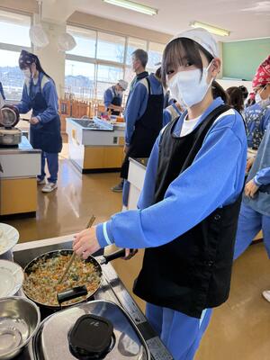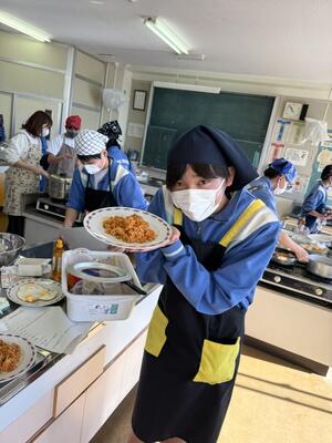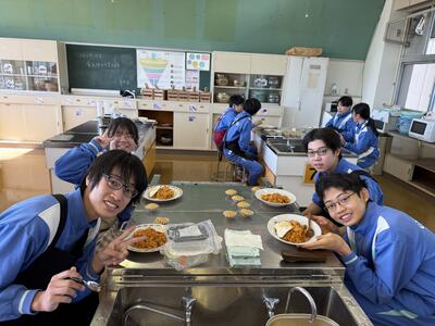 3年生が、1月14日(水)に、2学期末に実施された「マレーシア国際交流」のまとめとして、マレーシア料理「ナシゴレン」と「マーラーカオ」に挑戦しました。