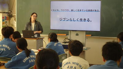 キャリア教育 ~「ジブンらしく生きる。」ために ~ 投稿: minu-jh (08:10) 11月4日(火)おおぞら高校大宮キャンパスの先生方をお招きし、1・2年生を対象に「キャリア教育」の授業を行っていただきました。 みらいは誰にもわからない、正解がわからない時代であり、みらいは自分で決めていい。 そのために自分の好きなことを書き出したり、整理したり、友達と交流したりしながら自分の好きなことを「ふかぼり」しました。 「ジブンらしく生きる。」ために!!